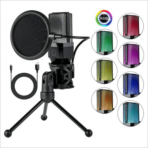 Игровой ПК usb конденсаторный микрофон rgb компьютерный микрофон для ps4 шумоподавление аудио и видео для подкастов/записи/потоковой передачи